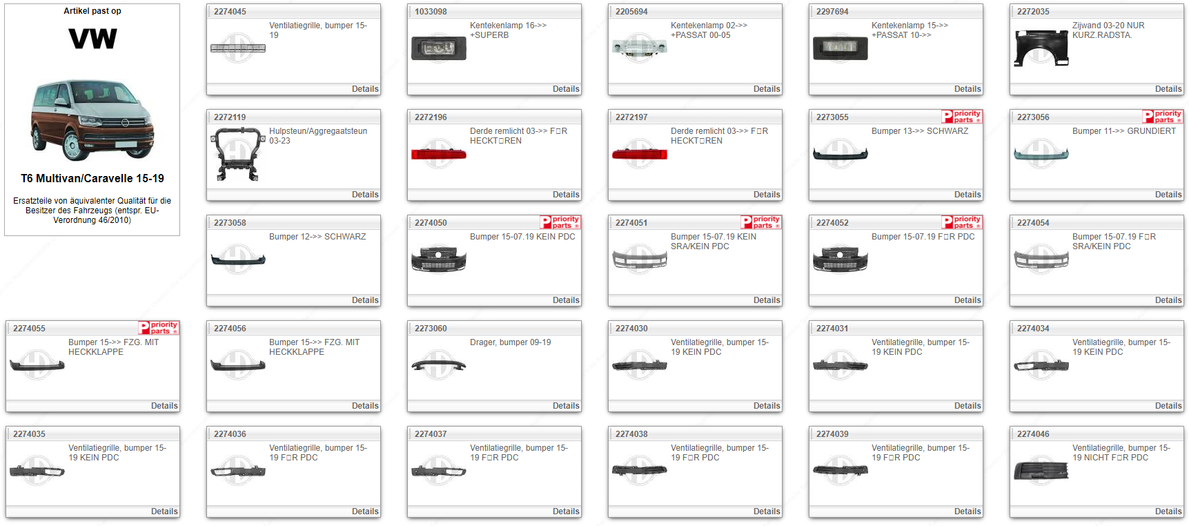 Alternatieve artikelen voor Standaard T6 Multivan/Caravelle 15-19